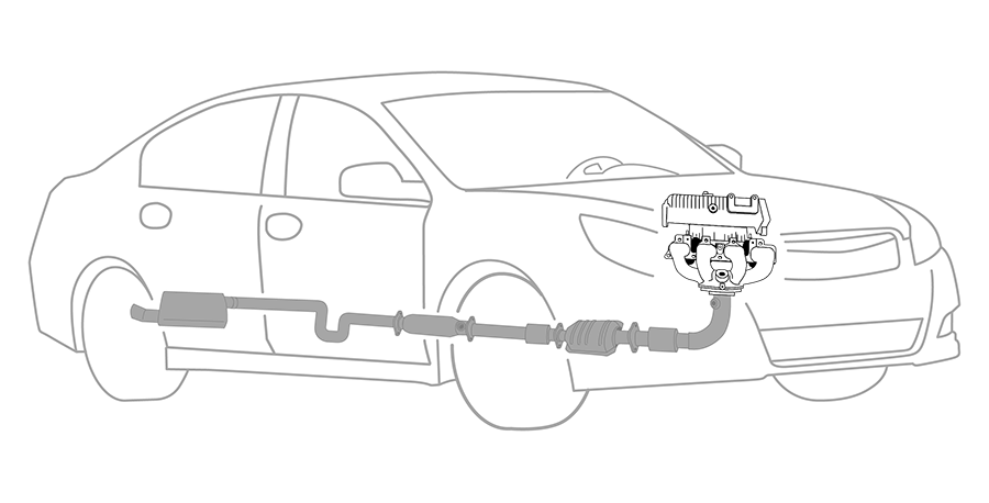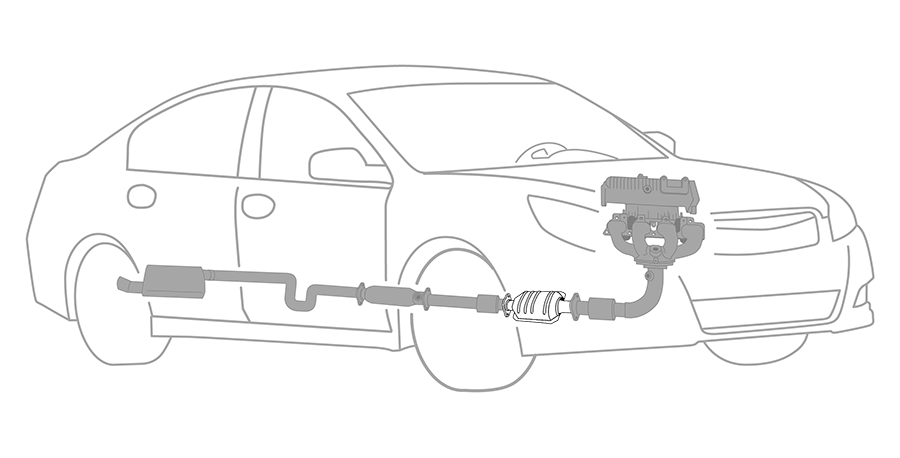 Located on the underside of your vehicle, the exhaust system is responsible for collecting and directing harmful emissions away from the vehicle, reducing the amount of pollutants released into the environment, and minimizing engine exhaust noise and force. The exhaust system is composed of pipes and tubing designed to streamline vehicle operation while maximizing vehicle performance and efficiency. Engines produce dangerous gases as a byproduct of the combustion process. The exhaust manifold collects the emissions from the engine and funnels the gases through the front pipe to the catalytic converter. The converter transforms these harmful gases, like carbon monoxide, hydrocarbons, and nitrogen oxide, into less harmful ones, like oxygen, nitrogen, water vapor, and carbon dioxide. The muffler helps cancel out the noise created by the engine. The muffler dissipates sound waves while the tailpipe releases the converted gases into the atmosphere.