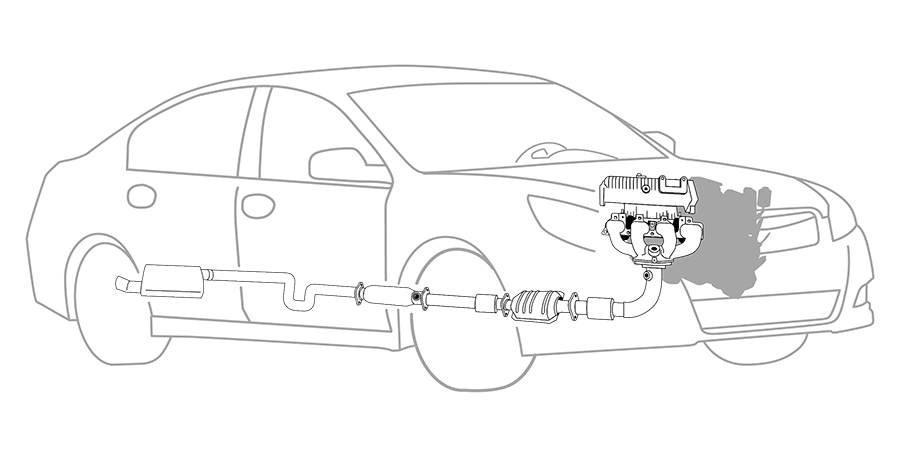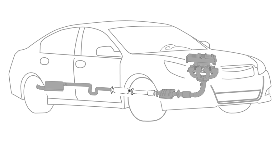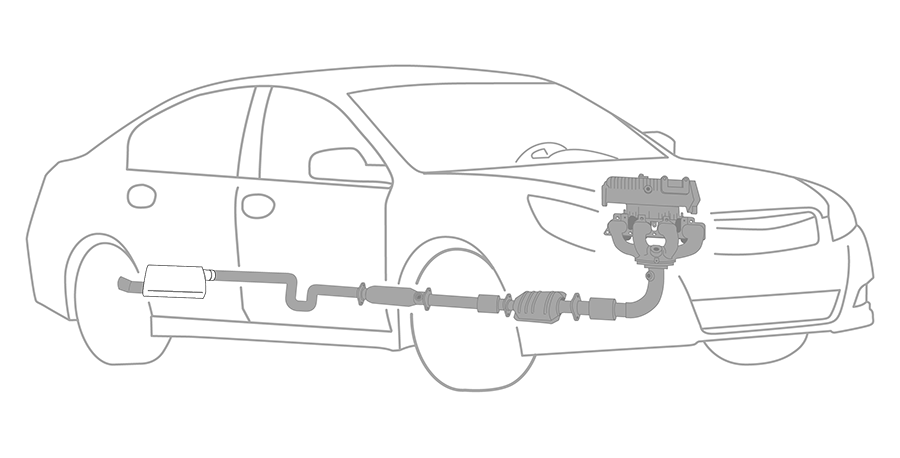 Located on the underside of your vehicle, the exhaust system is responsible for collecting and directing harmful emissions away from the vehicle, reducing the amount of pollutants released into the environment, and minimizing engine exhaust noise and force. The exhaust system is composed of pipes and tubing designed to streamline vehicle operation while maximizing vehicle performance and efficiency. Engines produce dangerous gases as a byproduct of the combustion process. The exhaust manifold collects the emissions from the engine and funnels the gases through the front pipe to the catalytic converter. The converter transforms these harmful gases, like carbon monoxide, hydrocarbons, and nitrogen oxide, into less harmful ones, like oxygen, nitrogen, water vapor, and carbon dioxide. The muffler helps cancel out the noise created by the engine. The muffler dissipates sound waves while the tailpipe releases the converted gases into the atmosphere.